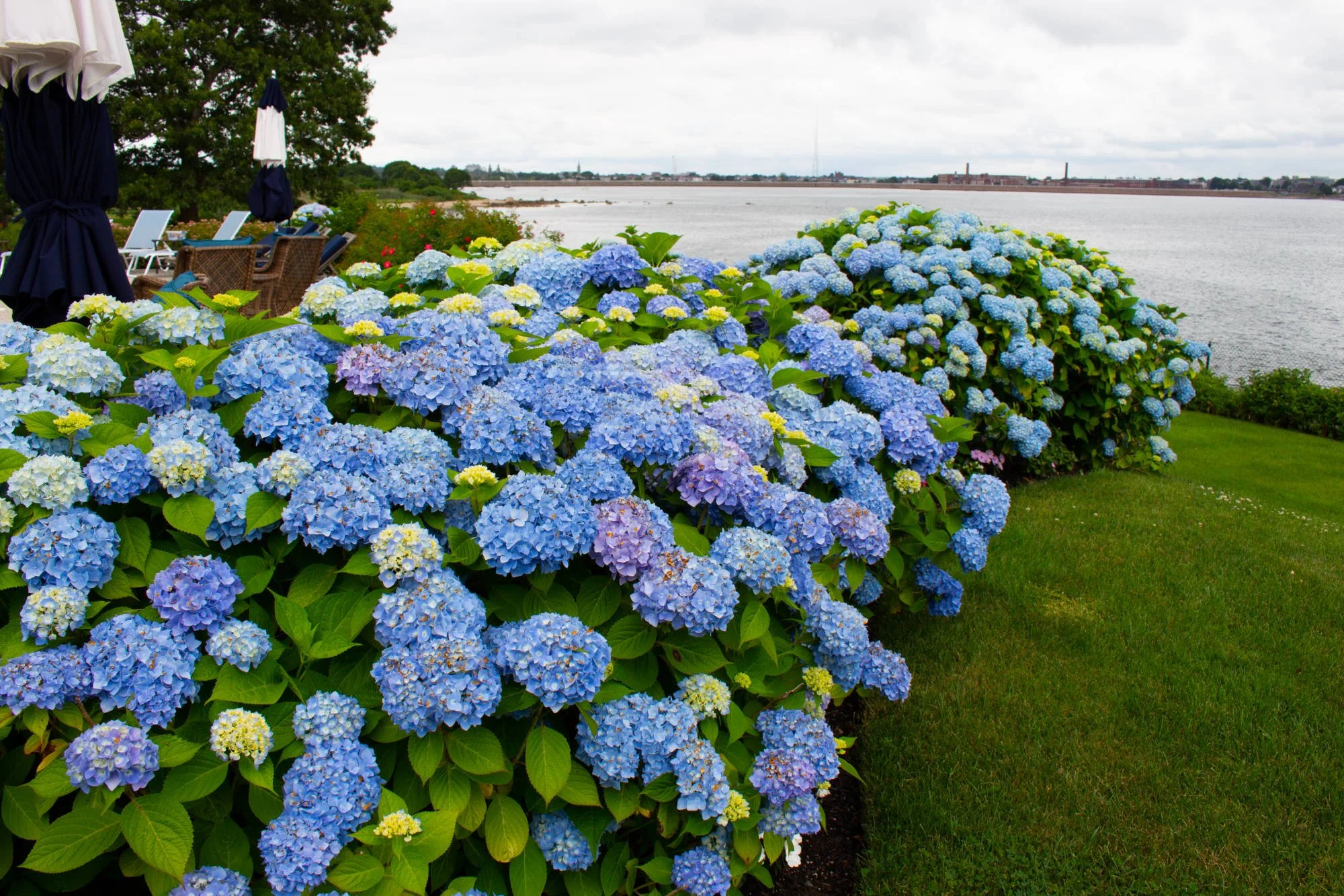This breath taking coastal cottage, is incredibly manicured and full of soft color right on the water front. This private estate is decorated with full hydrangeas and fresh greenery for a luxurious, yet clean look. Enjoy the in-ground pool and hot tub or overlook the water all from the privacy of your backyard.